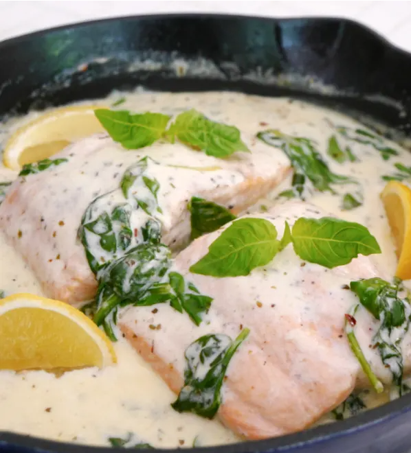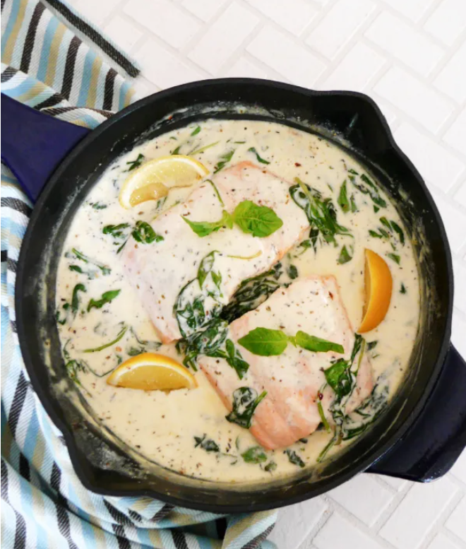 Salmón cremoso estilo toscano con espinacas – Cena keto gourmet en 25 minutos
